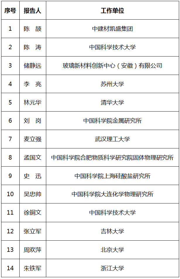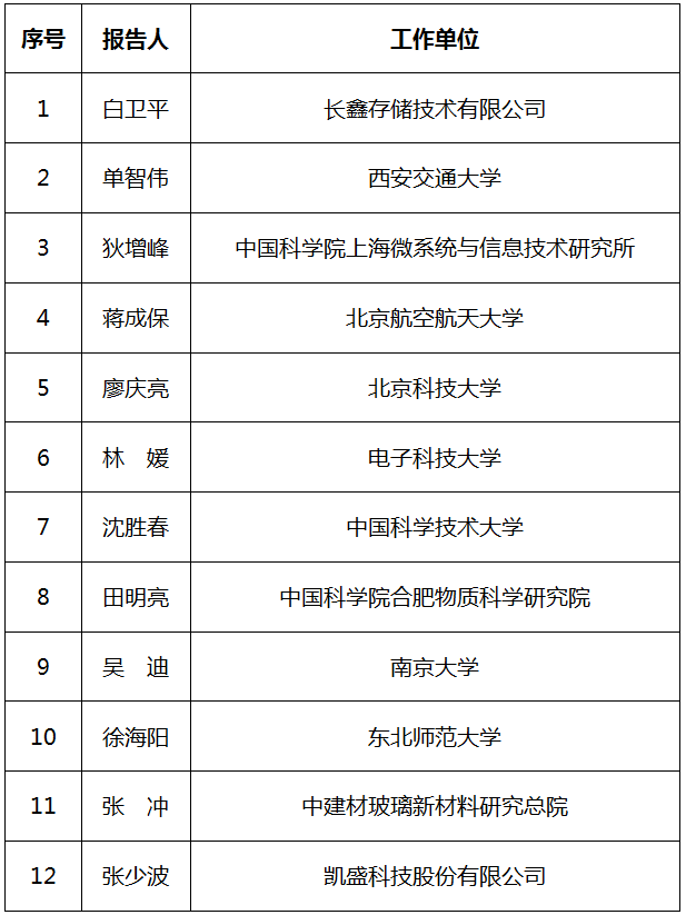 (四)信息材料分论坛特邀报告专家(按姓氏拼音排序)