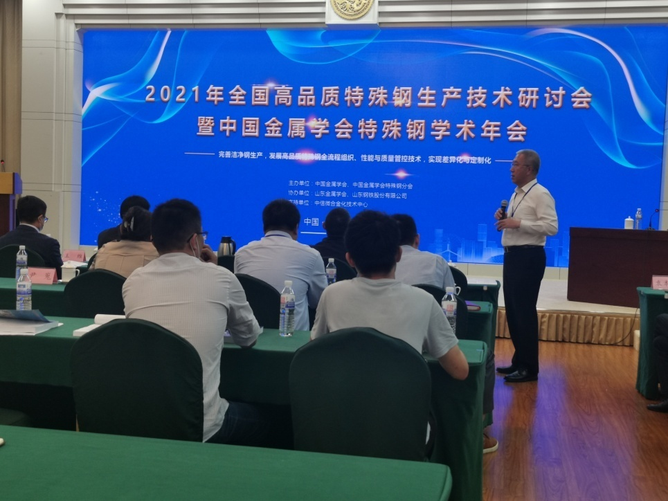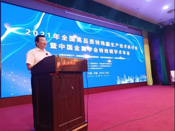 2021年9月26~29日,由中国金属学会、中国金属学会特殊钢分会主办,山东金属学会、山东钢铁股份有限公司协办的“2021年全国高品质特殊钢生产技术研讨会暨中国金属学会特殊钢学术年会”在济南成功召开。会议主题是“完善洁净钢生产,发展高品质特殊钢全流程组织、性能与质量管控技术,实现差异化与定制化”。会议得到了全国特殊钢行业的高度重视和关注,来自特殊钢生产企业、大专院校、科研院所、及特殊钢上下游用户企业等近90余家单位280多名专家学者及科技人员相聚在有“四面荷花三面柳,一城山色半城湖”美誉的国家历史文化名城、龙山文化的发祥地“泉城”山东济南,共同研讨特殊钢行业的转型升级、高质量发展。会议共收到邀请报告13篇,论文投稿61篇,发布学术报告60个,包括16个大会报告、10个特殊钢企业高端论坛报告及4个专题会场34个报告。