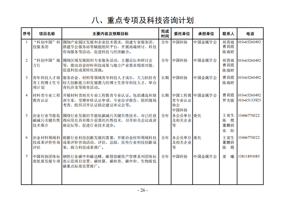 八、重点专项及科技咨询计划
