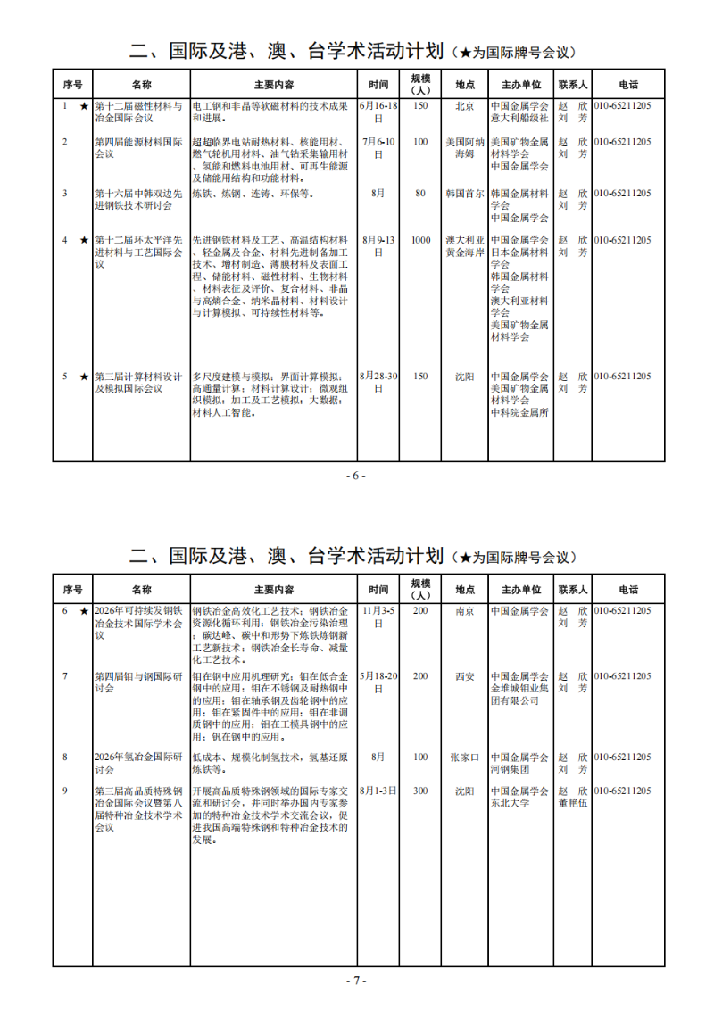 二、国际及港、澳、台学术活动计划