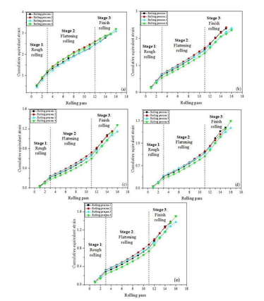 采用有限元数值模拟的方法研究了不同椭圆坯轧制工艺对特厚模具钢板不同位置的累积变形量、单道次变形量的影响,从理论上阐明椭圆坯轧制控制关键点。结果表明:粗轧的前3道次压下量变化对心部变形影响不大,心部变形量主要取决于精轧阶段单道次压下量。采用终轧前3-5道次较大的压下量,心部累积变形量最大,可以有效提高大规格椭圆坯轧制的特厚板心部变形渗透率。