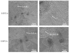 图5 不同冷速下钢板SEM组织
