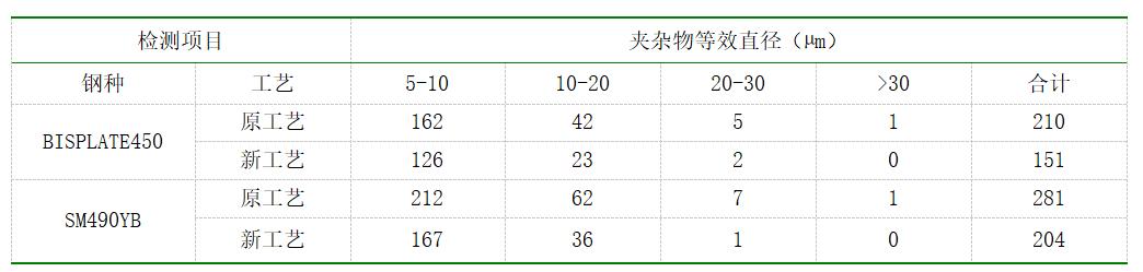 表1 新工艺应用前后---铸坯中夹杂物检测结果对比