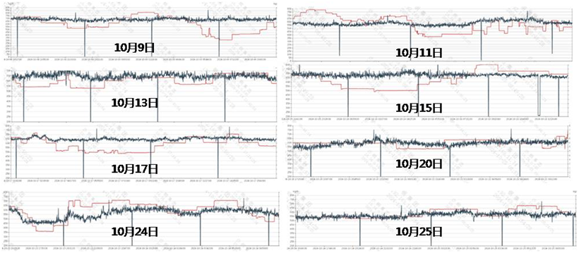 新方法2通过烧结参数预测烟气NOx浓度,然后根据运行状态设定氨氮比,进而确定氨水流量,氨水流量曲线稳定性进一步提高,平均值也下降至370kg/h。