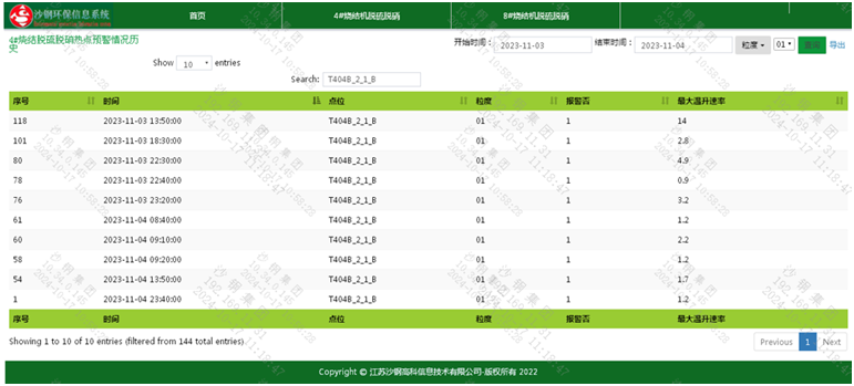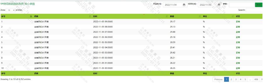 烧结生产和脱硫脱硝是相对独立的两个系统,以往对两个系统间不同参数的规律性分析只能依赖于人工记录,对于日常问题的处理分析和技术的进一步提升非常不利。为了实现烧结和活性焦系统的协同控制,开发了烧结和活性焦工艺关键数据采集系统,实现了数据存储、查询、导出,以及趋势线绘制等功能,系统设计原理如图13所示。同时通过对部分关键数据制定判断规则,实现了对脱硫脱硝系统的监测功能,部分运行界面如图14至图16所示。