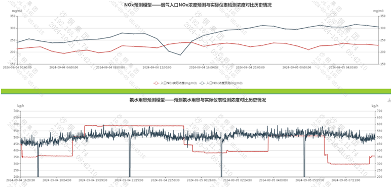 原有喷氨控制方法只考虑了进出、出口在线检测数据,由于烟道内气流波动大,检测结果经常出现与实际浓度偏差较大的情况,因而将该数据用于氨水计算多数情况均会带来过大的偏差,在模型应用前氨水平均流量为483kg/h。