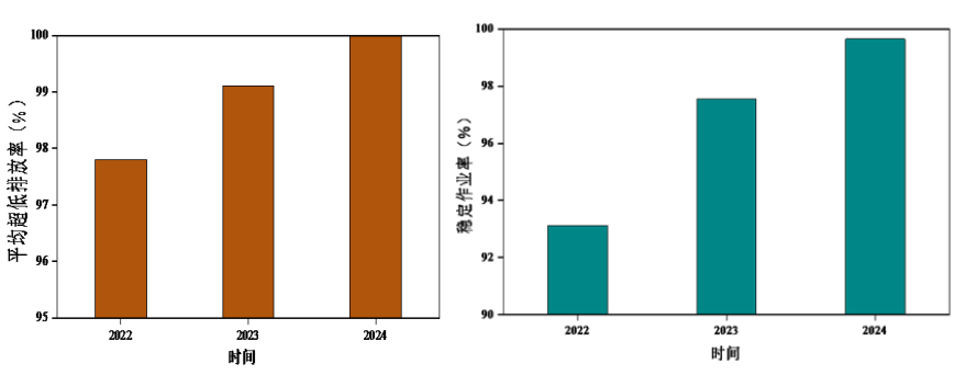 图19 近三年活性焦系统平均超低排放率(左)和稳定作业率(右)%
