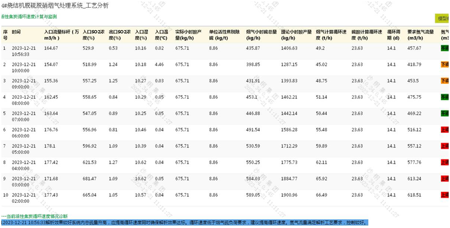 2.2开发了活性焦循环速度闭环控制模型,通过在线诊断调整改善了系统透气性降低了活性焦消耗。