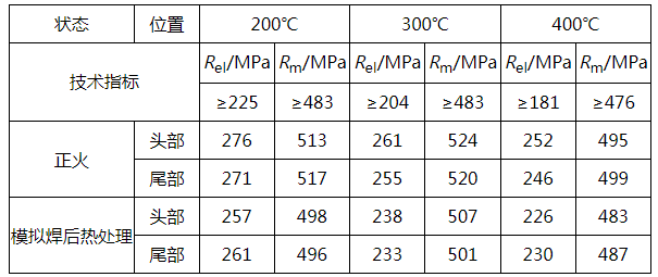3、SA-516Gr.70低合金高强度钢主要用于制造堆顶固定屏蔽等装备。要求:钢板正火(N)、模拟焊后热处理处理后(SPWHT)的高温200℃、300℃和400℃的Rm不小于483MPa、483MPa、476MPa。也是目前国内外SA-516Gr.70钢板无法满足的要求。