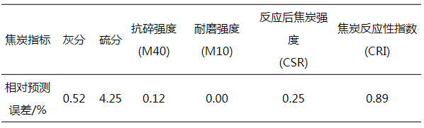 表1 焦炭质量预测模型在不同焦炭指标的相对预测误差