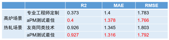 4、在预测模型方面,基于预测模型框架体系,进行案例测试,包括热轧宽展预测数据、高炉压差预测数据等数据集,最优算法效果与专业算法工程师定制化模型效果相当,整体能力不低于国内先进友商水平。