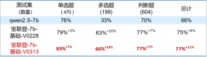 1、在语言模型方面,构建“通用基座-行业专属-推理优化”分层架构,确保大模型通识能力的基础上,强化领域特征,并优化推理效率与适配性,实现多阶段模型提升架构创新。采用“继续预训练+SFT调优+蒸馏压缩”联合优化策略,通过行业特征增强、监督精调与高效蒸馏,实现模型性能与推理能力的双提升,成功训练垂类语言模型“宝联登-7b”,领域能力测评提升10%。