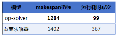 3、在决策模型方面,完成底层核心求解器通用化研发,解决行业场景抽象后的通用决策优化问题。并与强化学习算法进行集成,在生产排程场景下进行实验,大规模问题上,启发式为主的op-solver求解器的速度优势明显。
