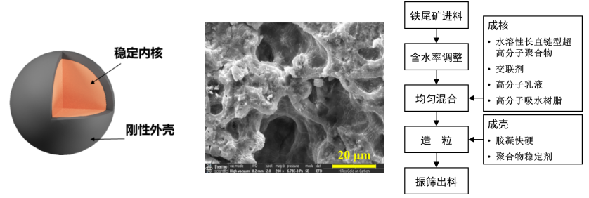 图10 核壳结构示意图 图11 骨料多孔形貌 图12 制备工艺流程
