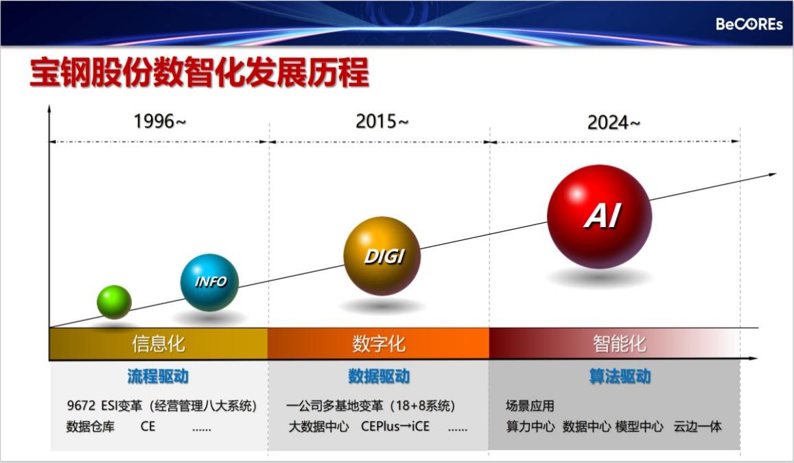 历近三十年积累,如图1所示,宝钢股份携宝信软件,在面向AI 时代的数据治理、算力支撑、平台建设方面已形成深厚沉淀。