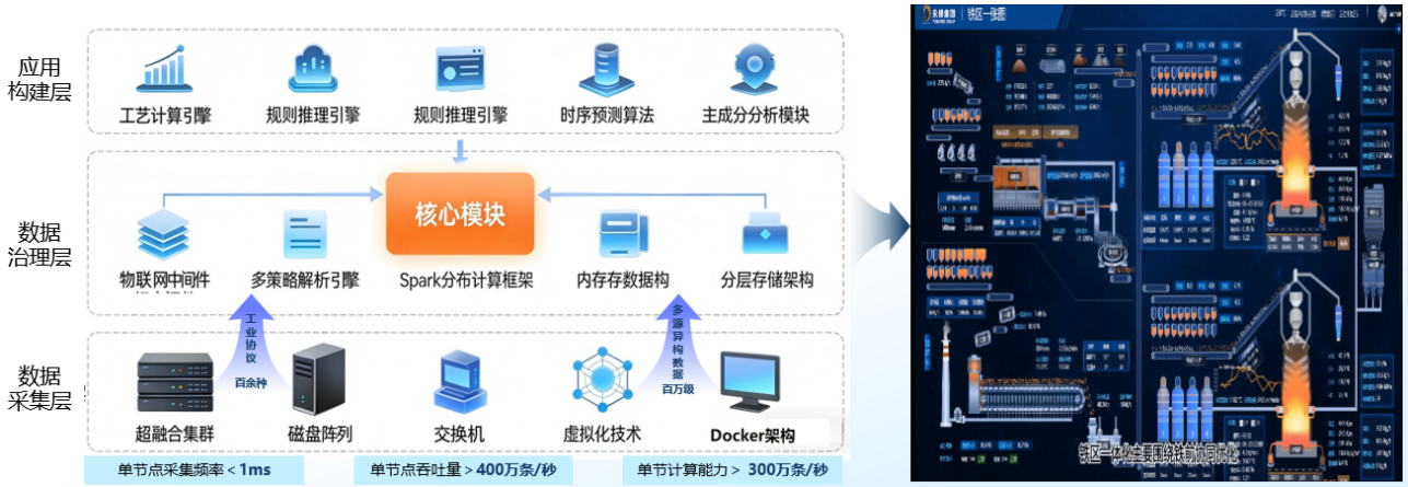 4、针对炼铁流程数据孤岛、业务割裂、协同不畅的难题,构建了“数据基座-治理赋能-协同调控”一体化管控平台。开发了基于分布式微服务的工业数据基座,攻克了跨工序海量数据的可靠采集、融合治理与高性能计算难题,设计了基于资源编排与绩效贯通的组织协同策略,研发了数据与知识双驱动的跨工序动态匹配与协同调控技术,实现了从数据感知、组织机构到生产协同的全面革新,推动生产模式从分段管控到协同优化的范式变革。成果应用于国内钢铁企业,并支撑相关企业入选国家级智能制造示范工厂,推动我国钢铁工业向高端化、绿色化、智能化生产迈进。