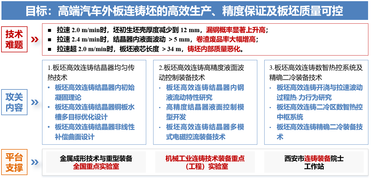 1、创新研发高拉速板坯连铸结晶器均匀传热技术,改善高钢通量下结晶器内初生坯壳的均匀性和稳定性,为板坯安全高效生产提供核心技术支撑。