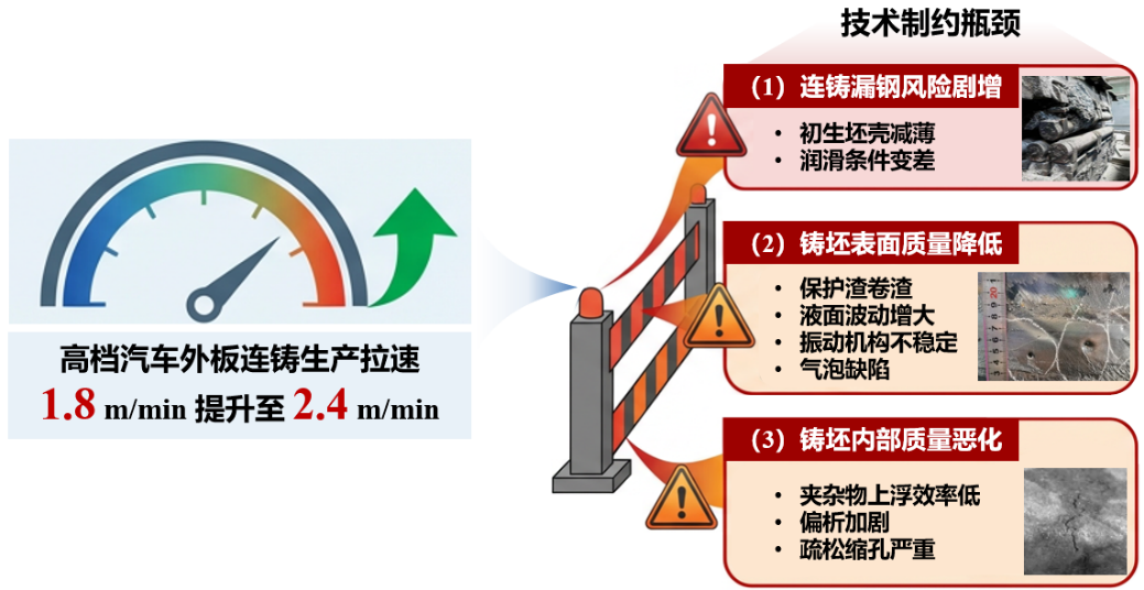 图1 高档汽车外板连铸生产拉速提升的技术制约瓶颈