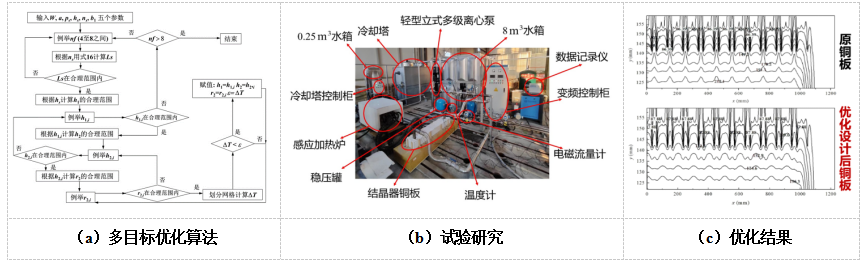 (2)高拉速板坯连铸结晶器铜板水槽多目标优化研究,通过数值仿真、多目标优化和试验验证,显著提升了结晶器铜板的冷却效果和传热均匀性。宽面铜板的热面(除角部外)最高温度由优化前的255℃降低到优化后的232℃,横断面温度差由优化前的67℃降低为优化后的<10℃。该方法为高拉速精控温板坯连铸结晶器设计提供了技术支撑。