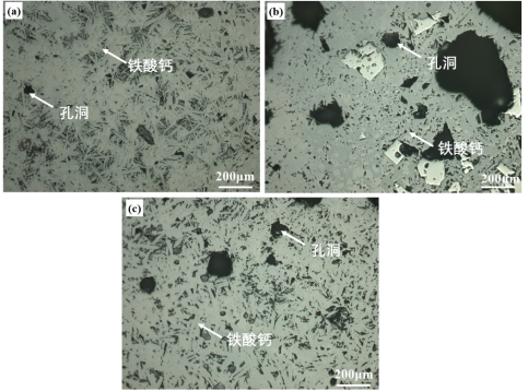 (a) 未配加氧化铁皮;(b)配加30%氧化铁皮;(c)配加50%氧化铁皮