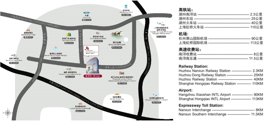 鉴于酒店附近交通状况,建议代表从湖州各高铁站或周边机场打车前往酒店,目的地选择:湖州南浔万豪万枫酒店。