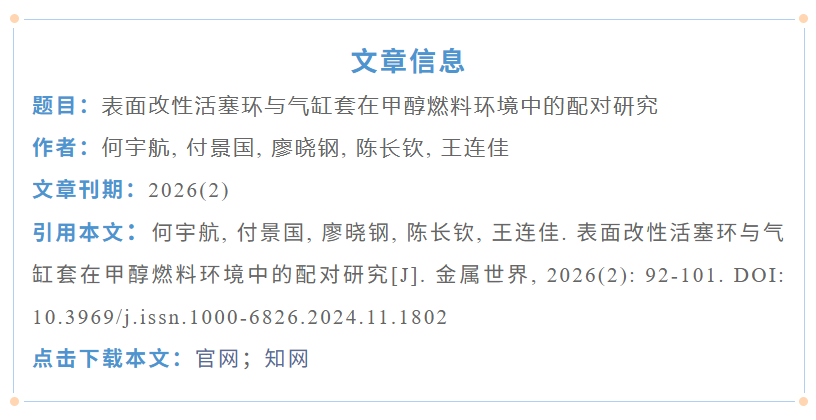 表面改性活塞环与气缸套在甲醇燃料环境中的配对研究