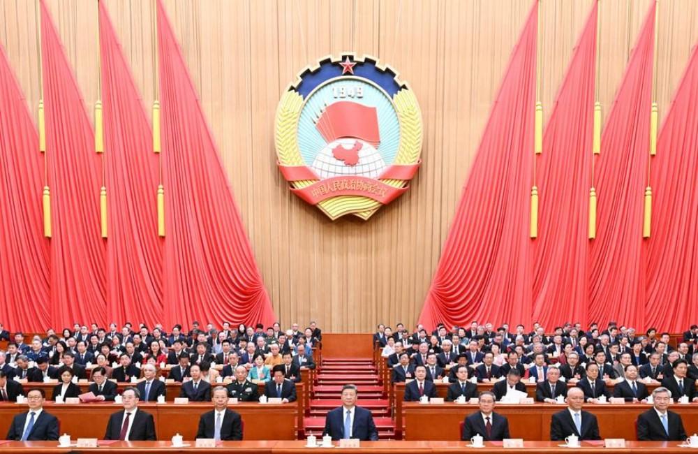 3月11日上午,中国人民政治协商会议第十四届全国委员会第四次会议在北京人民大会堂闭幕。全国政协主席王沪宁主持闭幕会并讲话。新华社记者 黄敬文 摄